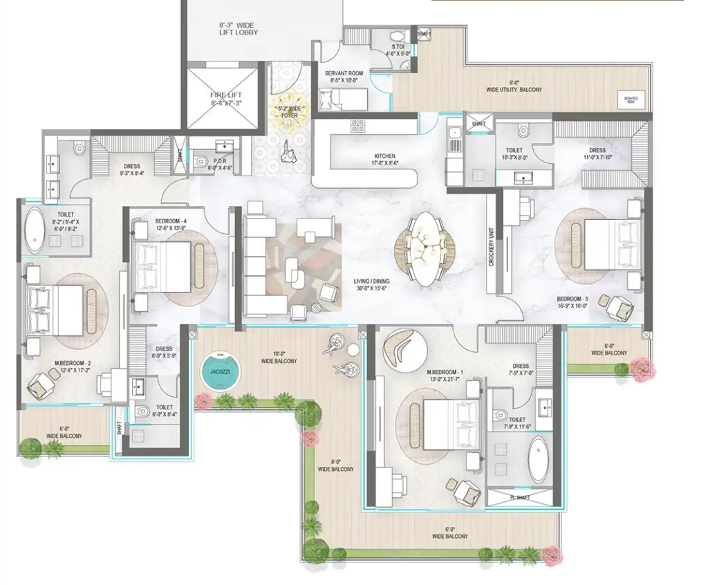 M3M Elie Saab Luxury Apartments offer spacious 3 and 4 BHK residences ranging from approximately 1820 to 2190 sq. ft., designed as per the premium M3M Elie Saab Floor Plan specifications.
